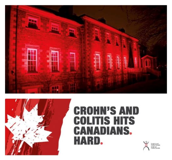November 8, 2023, Government House will glow red in recognition of Crohn’s and Colitis Awareness Month.
