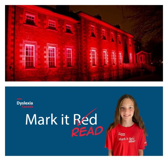 October 21, 2023, Government House will be lit red in recognition of Dyslexia Awareness Month.