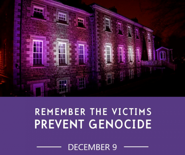 December 9, 2023, Government House will be lit purple and white in recognition of International Day of Commemoration and Dignity of the Victims of the Crime of Genocide and the Prevention of this Crime.