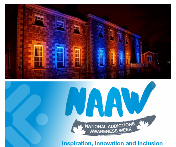 November 18, 2023, Government House will be lit orange and blue in recognition of National Addictions Awareness Week, November 19th-25th.