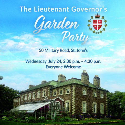 Her Honour The Honourable Judy M. Foote, P.C., O.N.L., Lieutenant Governor of Newfoundland and Labrador, and His Honour Howard W. Foote invite the public to attend a Garden Party at the Mockbeggar Plantation, a Provincial Historic Site, in Bonavista, on Monday, July 15th, 2019, 2:30 – 4:00 p.m. This will be the first Garden Party hosted by a Lieutenant Governor on the Bonavista Peninsula. It will include refreshments and entertainment. On Wednesday, July 24th, 2019, 2:00 – 4:30 p.m., the…