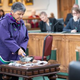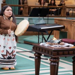 The Installation Ceremony included an ecumenical blessing by Rev. Monsignor Patrick J. Kennedy, a Kullik lighting by Elder Emma Reelis, and performances by Strong Harbour Strings Collective, Holy Heart Choral Music Chamber Choir, & Susan Hill.