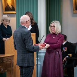 The Honourable John Haggie, Minister of Municipal & Provincial Affairs & Registrar General, presenting the Great Seal of Newfoundland & Labrador.