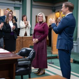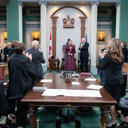 Krista Quinlan, Clerk of the Executive Council, administering the Royal Commission of Appointment.